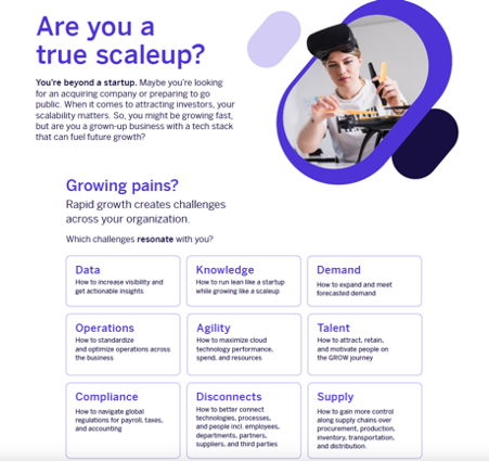 Time flies when you're a startup. If you strike success, you quickly find you cannot scale to meet demand or launch new products without getting a migraine. That's a scaleup's world. Helping them get tech stacks that match their ambition is SAP's thing. These infographics set out SAP's stall for helping scaleups grow faster.